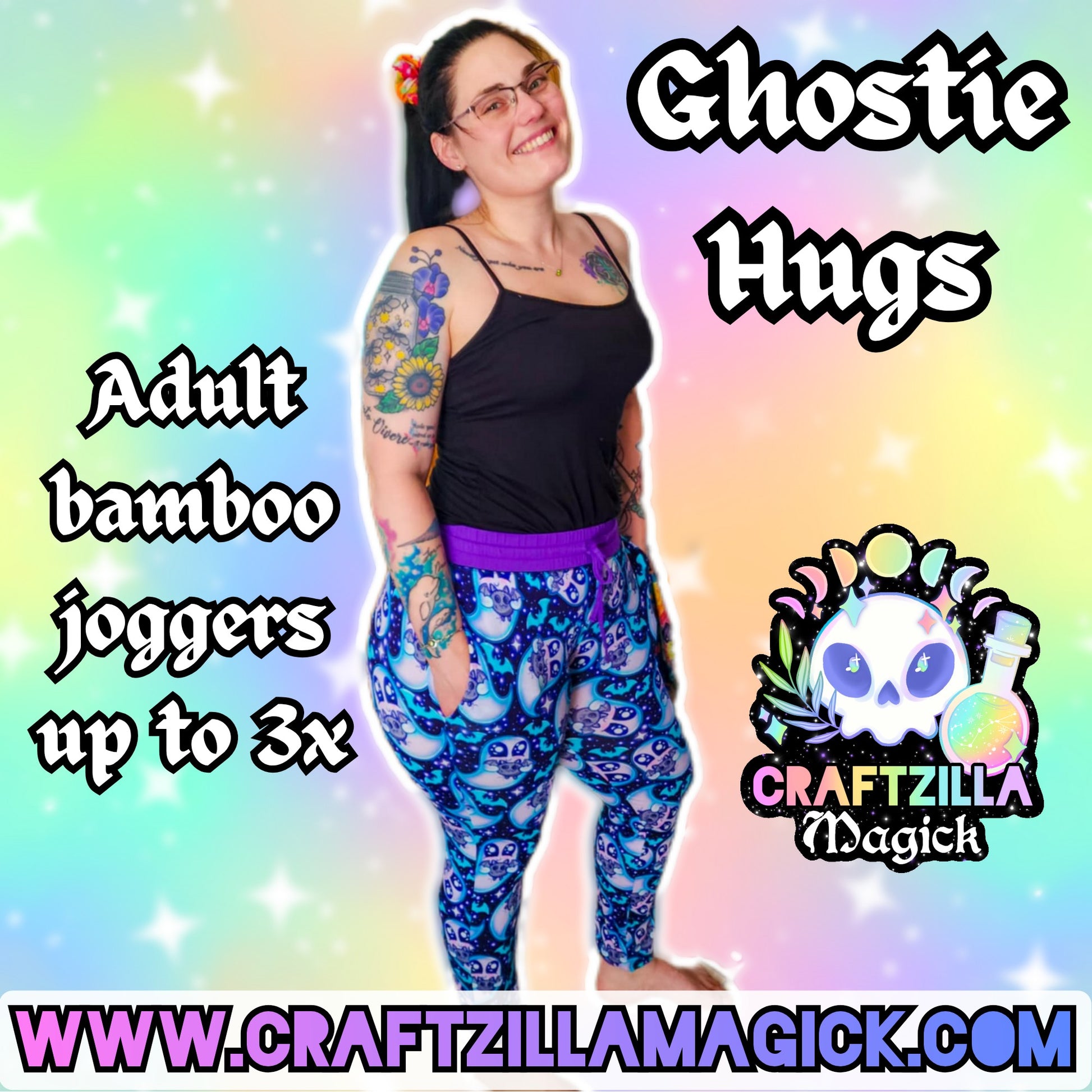 Ghostie Hugs Adult Joggers are the perfect cozy companion! Soft, comfy, and playful, they feel like a gentle ghostly hug that keeps you snug all day. Whether you’re lounging or out and about, these joggers add a fun, spirited touch to your look.